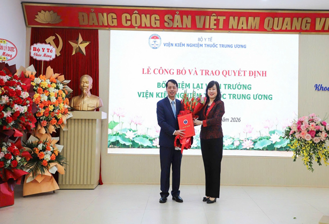 LỄ CÔNG BỐ VÀ TRAO QUYẾT ĐỊNH BỔ NHIỆM LẠI VIỆN TRƯỞNG VIỆN KIỂM NGHIỆM THUỐC TRUNG ƯƠNG x 17/04/2026 Lễ công bố và trao quyết định bổ nhiệm lại chức vụ Viện trưởng Viện Kiểm nghiệm thuốc Trung ương đối với PGS.TS Đoàn Cao Sơn